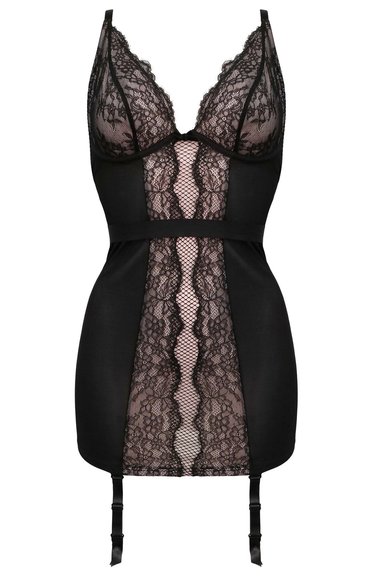 Complete the Dark Romance collection with this sumptuous underwired cami suspender. Show off your gorgeous curves with contoured lace and contrasting lining. This flattering design features detachable and adjustable suspender straps and an elasticated waist band to help you feel comfortable whilst still looking fabulous.Â