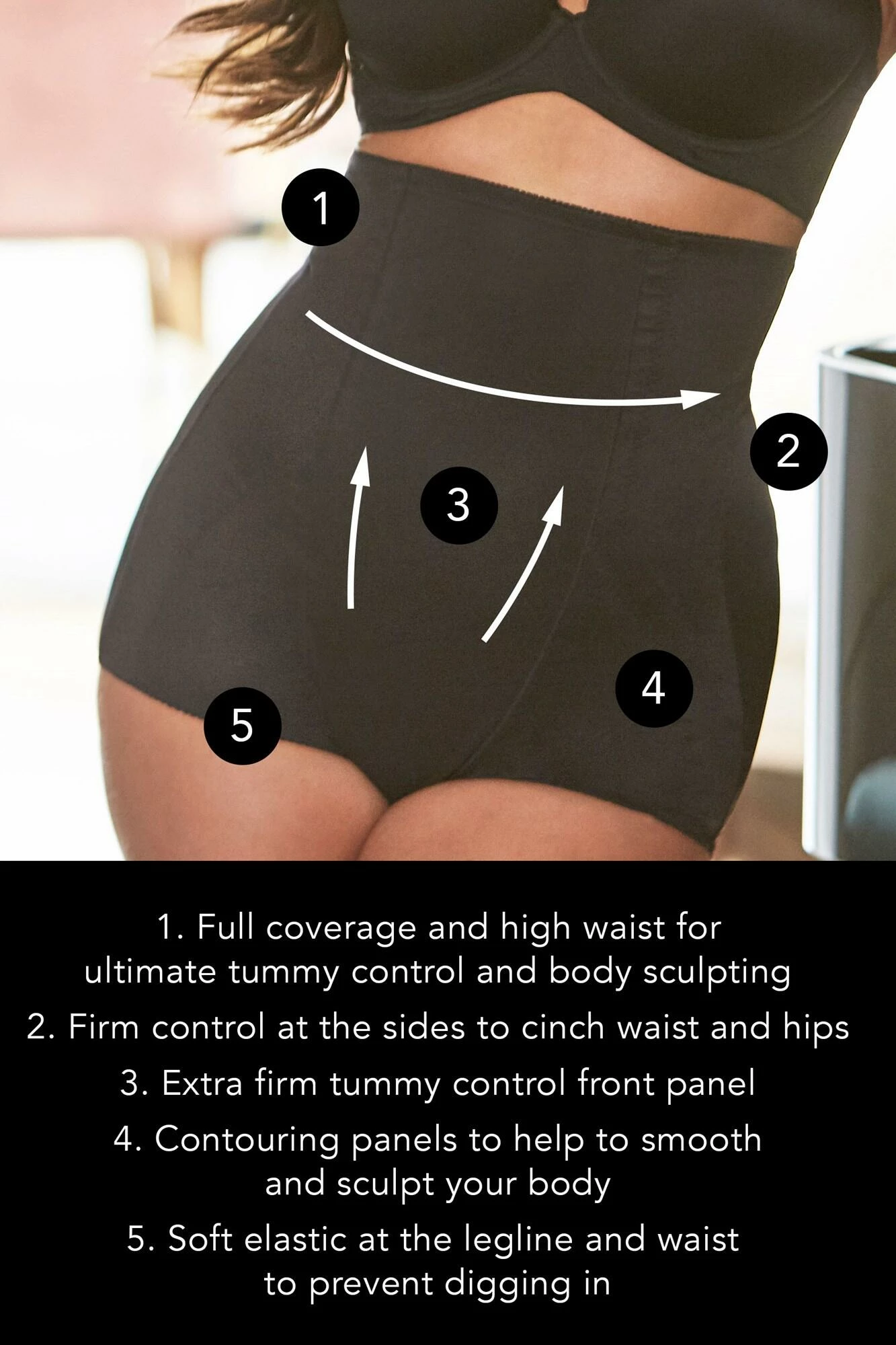 Ooze confidence in our most controlling and firm shapewear collection yet! The Hourglass sculpting pieces help to slim, control and sculpt your body, with designs that have been specifically created to suit all body shapes. Our Hourglass Firm Control High Waist Brief offers full coverage that’s designed to hold you in and help create an hourglass figure. Featuring contouring panels and high-waisted tummy control, this style will sculpt your shape and hold you in all the right places. With the added detail of ruching to the back to fit and shape to your curves and soft elastic at the legline for comfort. Night out planned? This brief is ideal for every occasion or even under high-waisted jeans.