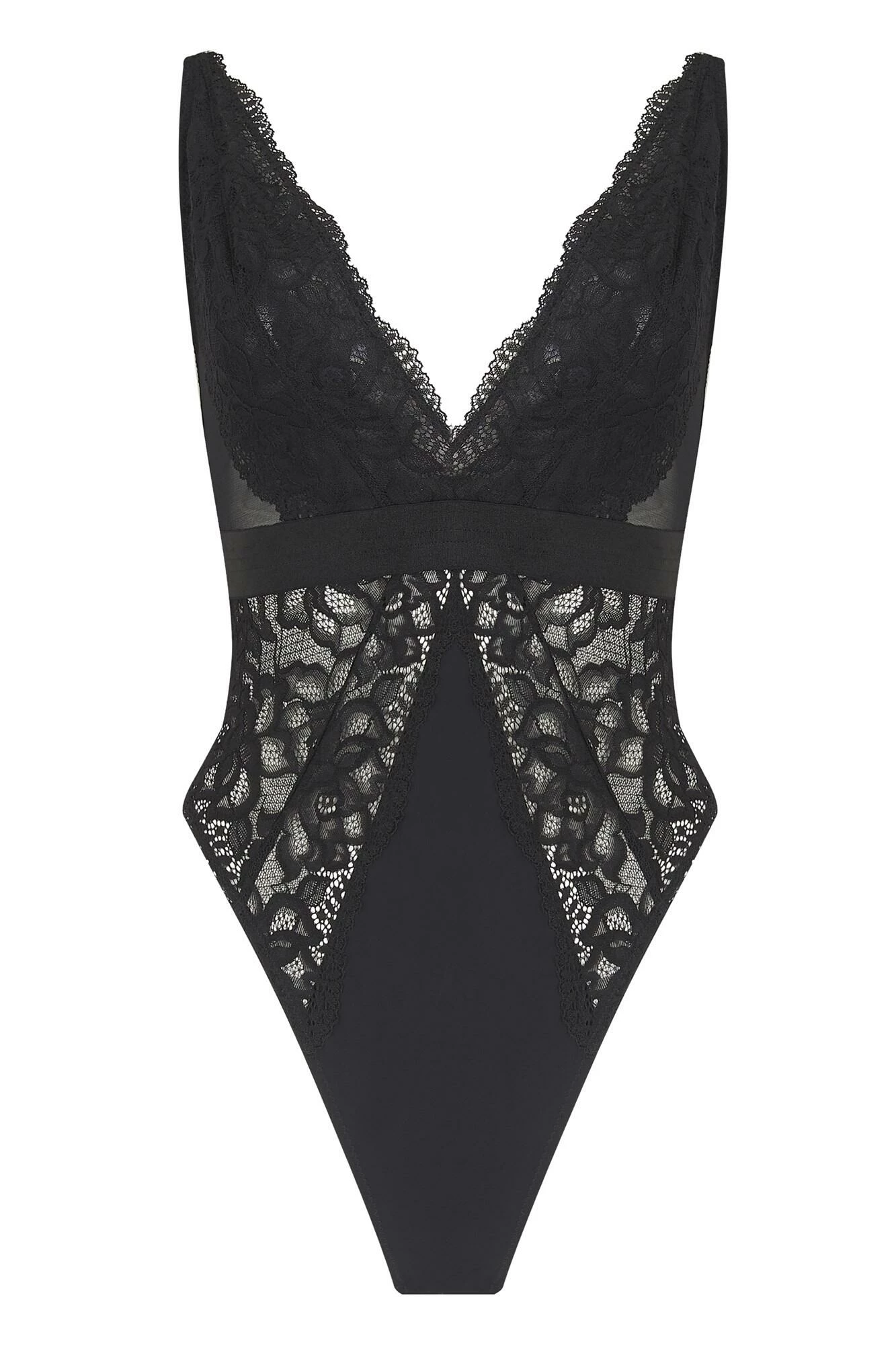India loves luxurious, worn-to-be seen bodies. So make like the model and give your lingerie drawer the racy, lacy style update it needs! Featuring her favourite fabric combo of daring mesh with floral lace, the pretty body features a sexy deep plunge to make the most of your assets. With luxe gold hardware details, there’s also a waist-cinching belt that shapes your mid-section to make the most of your curves. Dress up with a satin mini, or dress down with jeans. Your hourglass silhouette awaits, with a little help from India.