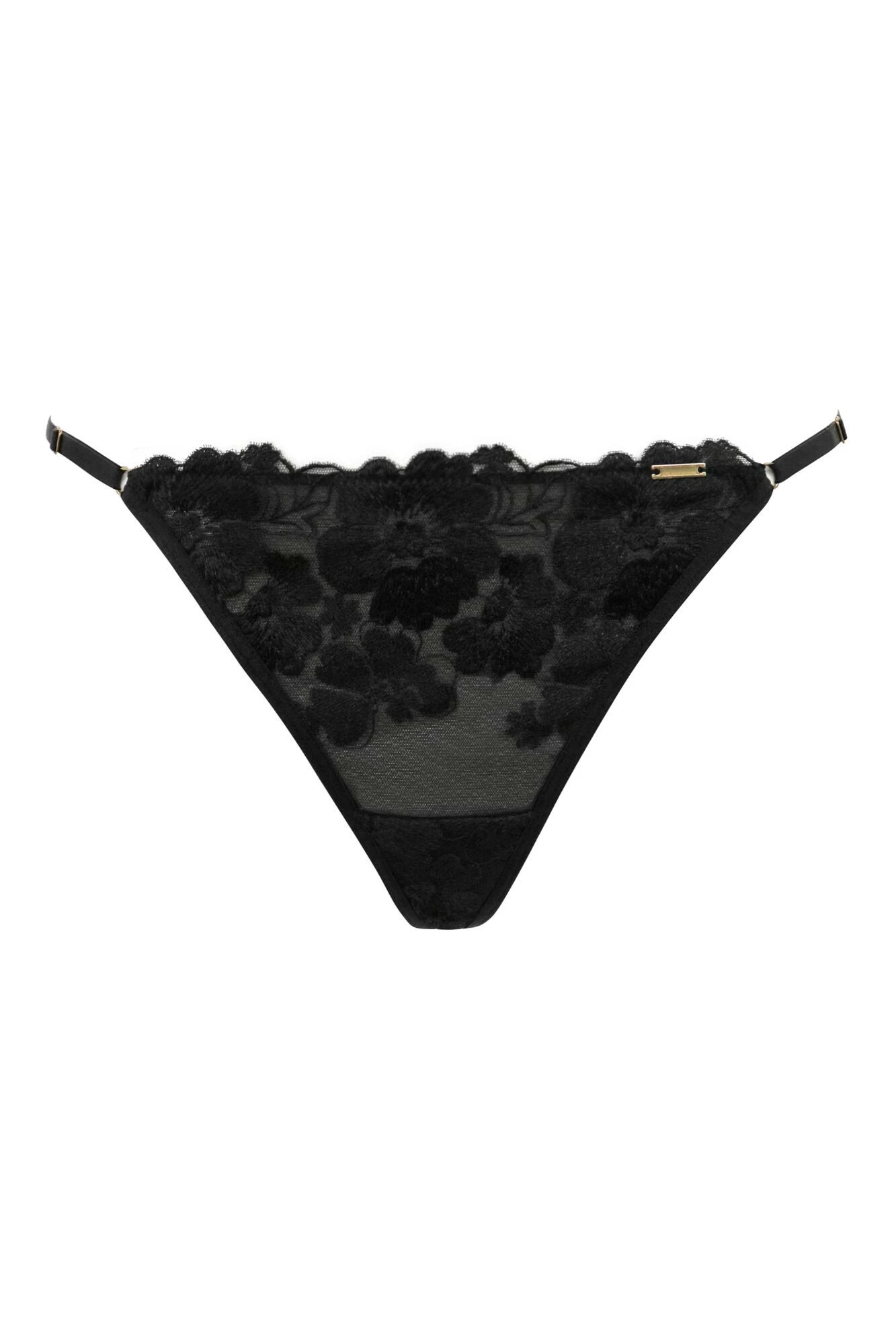 Your new favourite thong has arrived! Designed by India Reynolds herself, the India Bold Embroidery Thong features a cheeky semi-sheer front panel and is decorated in beautiful embroidery. This flirty tanga style thong is finished with luxe gold hardware details. Match with the India Bold Embroidery Bra for a tantalising look.