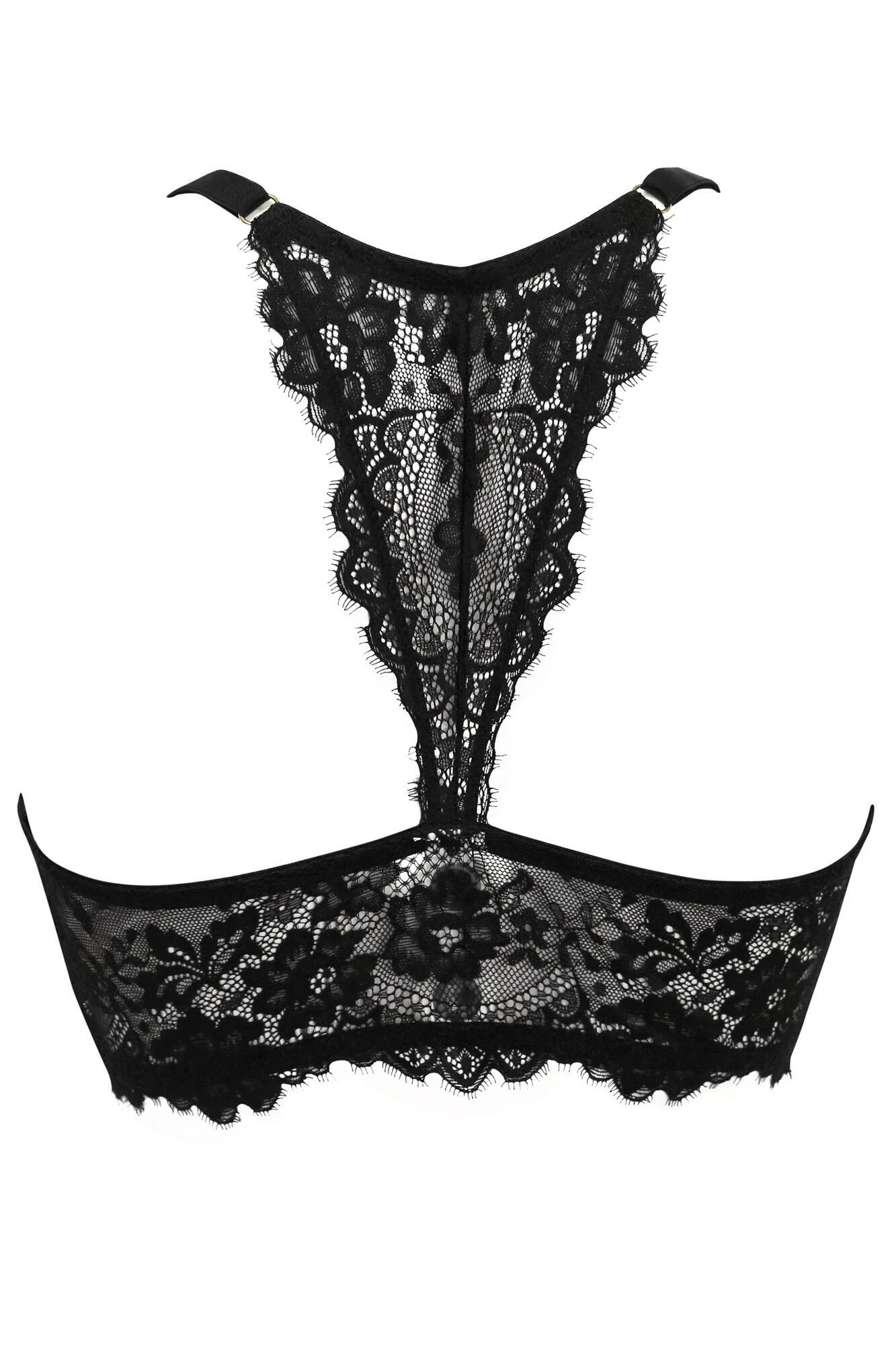 India Eyelash Lace Front Fastening Non Wired Bralette – Black