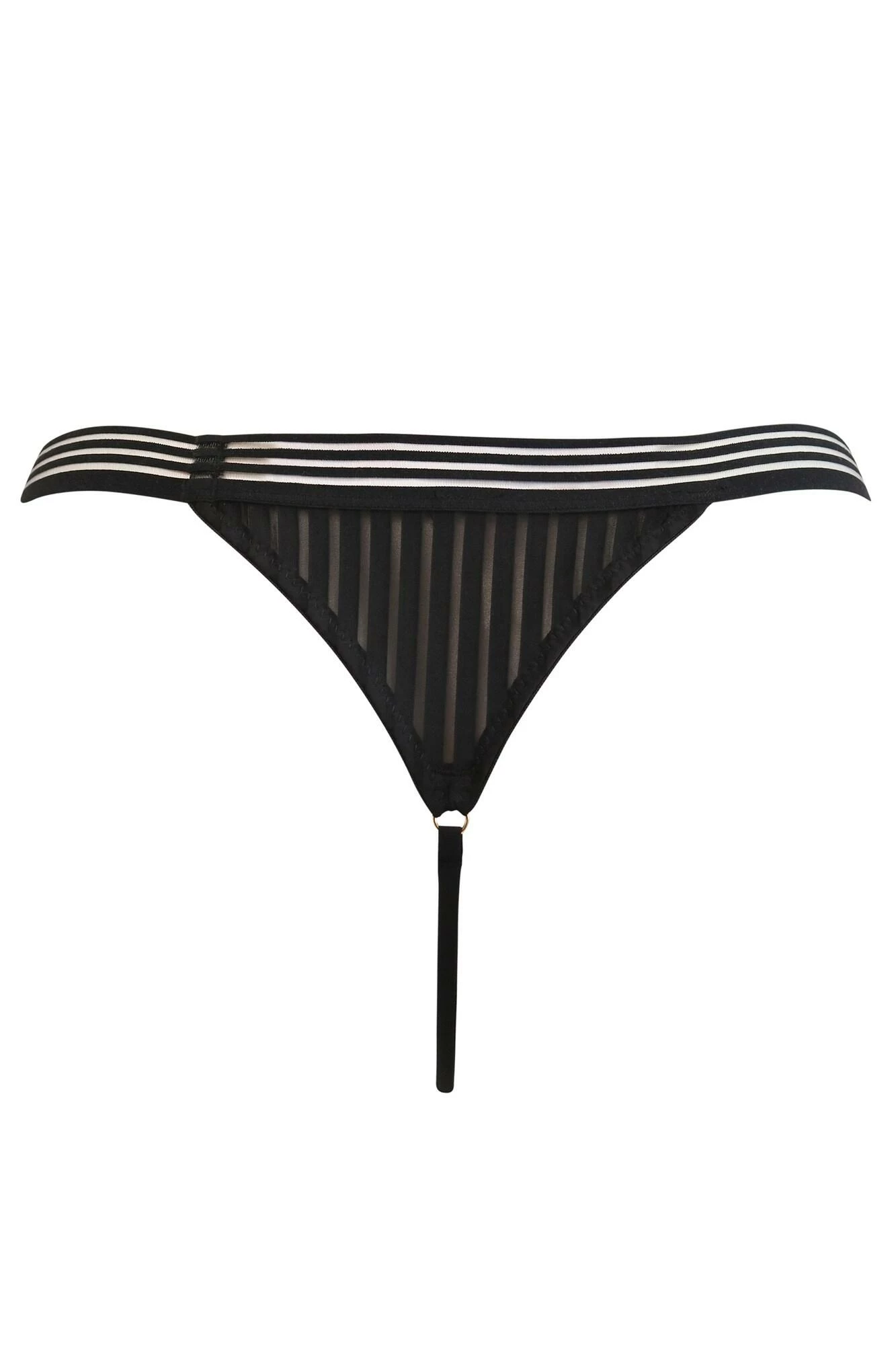 India loves luxe lingerie. So give your basics the day off, with this sensational tanga thong from the model’s own collection. With its on-trend stripe fabric and luxe gold hardware, it’ll help you nail the art of sexy seduction. But because it’s designed by India herself, it’s made to celebrate every inch of your curves with its leg-lengthening high-leg style and cheeky thong back. Her Stripe Tanga Thong is knicker perfection. But paired with the India Stripe Plunge Underwired Bra it’ll give a confidence boost from top to toe.