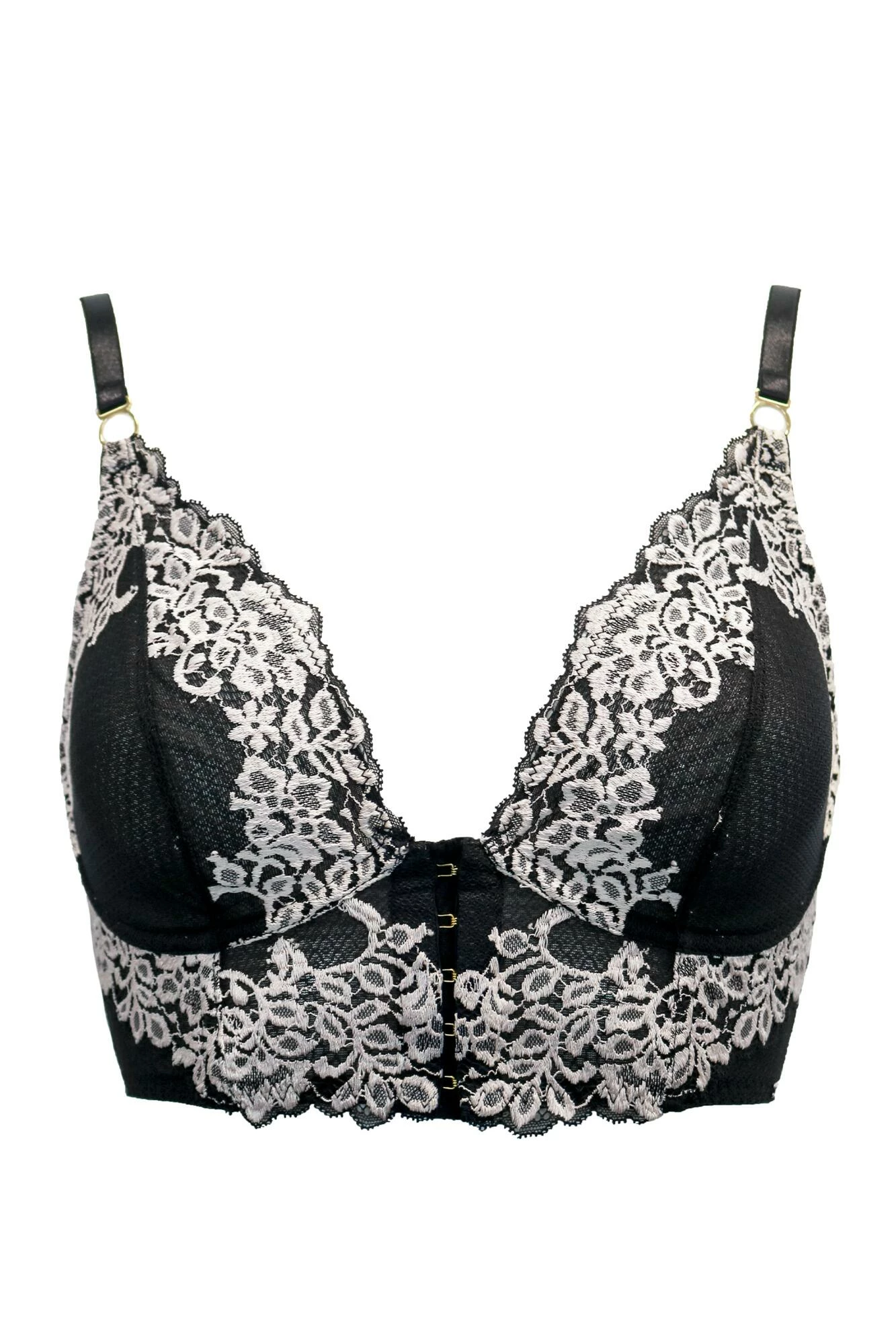 Decorate your body in luxurious lace with the India Two-Tone Floss Front Fastening Bralette. This underwired, racerback style features a supportive and stylish hook-and-eye fastening as well as adjustable straps. Worn as a beautiful set or worn to be seen with your favourite jeans or skirt, this tantalising non-padded bralette can be more styled in multiple ways. For a luxurious look match the India Two-Tone Floss Front Fastening Bralette with the India Two-Tone Floss High-Leg Brief.Â